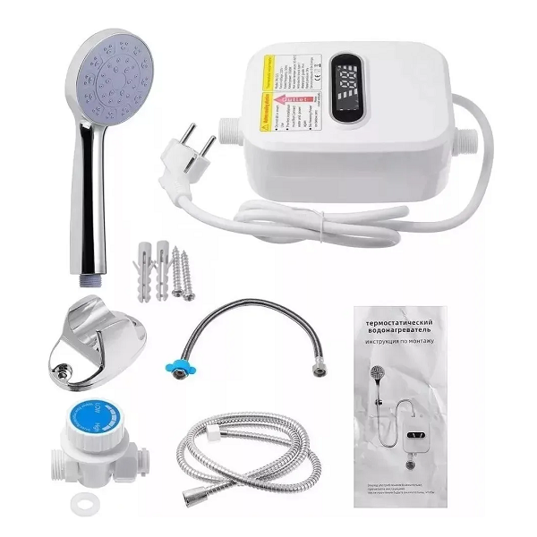 El Calentador de Agua Termostático RX-021 es un dispositivo eléctrico de alta eficiencia diseñado para proporcionar agua caliente instantánea sin necesidad de un tanque de almacenamiento. Con una potencia de 3500W y un rango de temperatura ajustable entre 30°C y 60°C, permite un control preciso y personalizado del agua caliente. Su pantalla LCD digital facilita la visualización de la temperatura en tiempo real, mientras que su construcción en acero inoxidable y ABS garantiza durabilidad y resistencia. Además, cuenta con protección IPX4, asegurando su funcionamiento seguro en ambientes húmedos. Aplicaciones y Usos Baños personales: Proporciona agua caliente al instante para duchas cómodas y relajantes. Cocinas: Ideal para lavar platos, utensilios y alimentos con agua caliente sin esperas. Oficinas: Perfecto para espacios de trabajo donde se requiere agua caliente para bebidas o higiene personal. Viviendas pequeñas: Su diseño compacto lo hace adecuado para apartamentos o casas con espacio limitado. Zonas rurales o sin acceso a gas: Funciona exclusivamente con electricidad, eliminando la necesidad de instalaciones de gas.