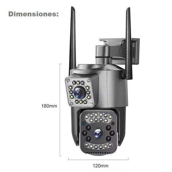 Protege tu hogar o negocio con una cámara WiFi inteligente. Ideal para exteriores, con doble antena WiFi y carcasa resistente a la intemperie. Su sistema motorizado tipo PTZ permite girar y cubrir amplias áreas sin dejar puntos ciegos. Los potentes LEDs infrarrojos y de luz blanca ofrecen imagen clara incluso en completa oscuridad. Recibe alertas en tu smartphone cuando detecte movimiento y habla en tiempo real con quien esté frente a la cámara.