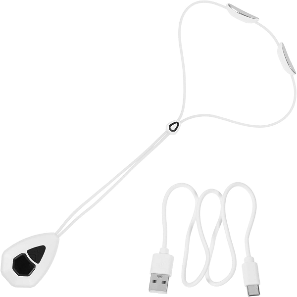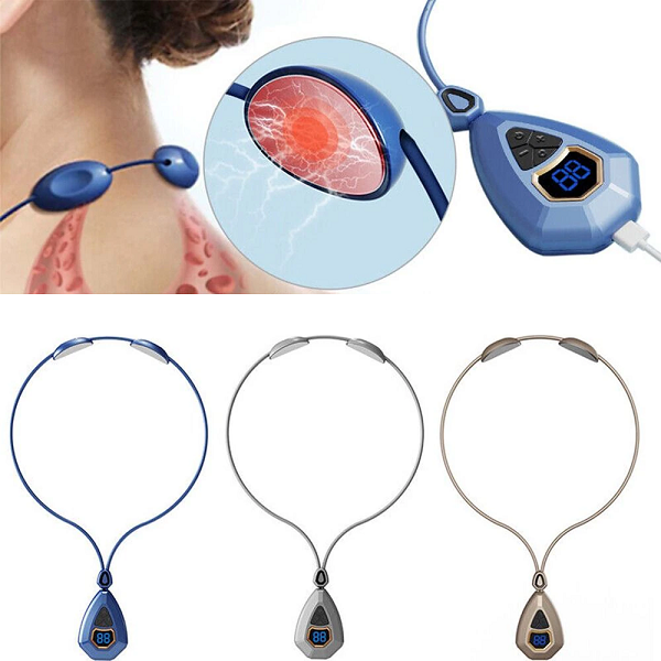 Marca / Nombre: Neck Massager Modelo: Colgante o collar de cuello Material: ABS y silicona. Color: Blanco, azul y fucsia. Largo: 51cm. Alto: 5cm. Ancho: 2cm. Potencia nominal: 5W Frecuencia nominal: 50Hz Batería: 1200mAh Carga: USV 5v. Modos de masaje: 5 niveles de intensidad de pulsos eléctricos. Sistema de calentamiento