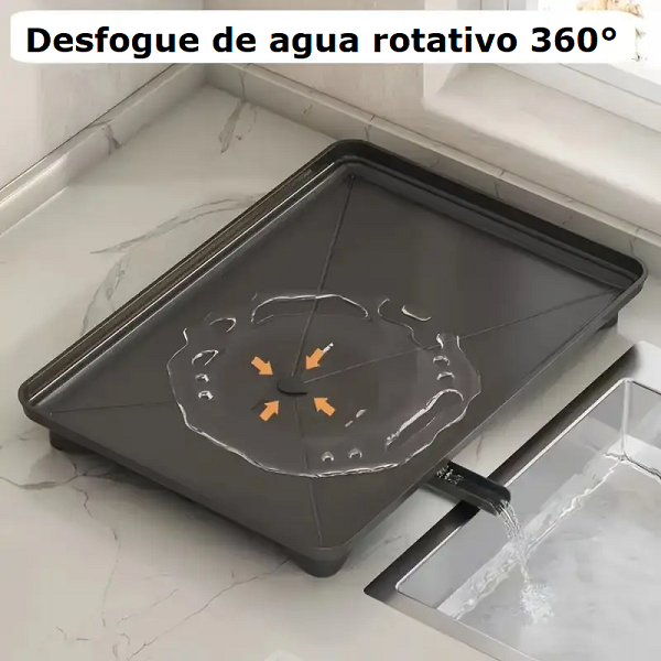 1 escurridor de 2 niveles. 1 bandeja recoge–goteo con salida/boquilla. 1 soporte lateral para tapa/tabla. 1 módulo/riel con ganchos para vasos. Tornillería y llave/guía de armado.1 Bandeja plástica. 1 Manual de usuario.