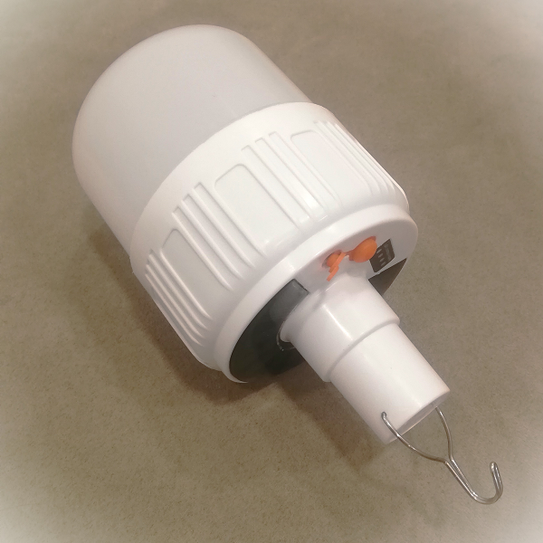 Es una lámpara LED colgante tipo foco, con carcasa de PVC y gancho metálico para colgar. Cuenta con panel solar integrado, batería recargable 18650 (~1200 mAh) y cable USB para carga. Incluye indicador de carga, es ligera (~189 g), práctica y versátil. Aplicaciones y usos Iluminación de emergencia durante cortes eléctricos en hogares. Fuente de luz portátil para camping, caravanas, excursiones o pesca. Ideal para mercados nocturnos, carpas, talleres y zonas sin acceso a electricidad. Recurso útil en situaciones de emergencia natural, como sismos o huracanes, gracias al modo SOS.