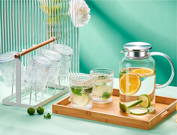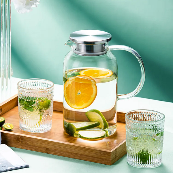 Nuestra jarra de vidrio borosilicato de 1.8 litros, completamente libre de BPA y tapa de acero inoxidable, ofrece una forma segura y hermosa para servir bebidas frías o calientes. Su amplia capacidad es ideal para compartir en reuniones o para uso continuo en familia. Resistente a cambios de temperatura, va del refrigerador al estante de servicios sin problemas. Además, su tapa y asa ergonómica garantizan una experiencia práctica, refinada y confiable.