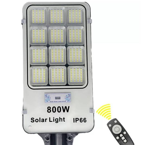 Marca / Nombre: Solar Light Modelo: 800w. Material: ABS, aluminio. Color: gris. Alto: 40cm. Ancho: 21cm. Fondo: 10cm. Color de Luz: Blanca. Potencia: 800w. Sensor de movimiento: De 5 a 10m de alcance. Control remoto: para su configuración. Tipo de instalación: fácil instalación de pared o poste. Altura recomendada para instalación: de 4 a 10m. Angulo de luminosidad: 120 Grados Grado de Protección: IP66 (Resistente al agua, Polvo, Salitre) Fuente de alimentación: Energía Solar