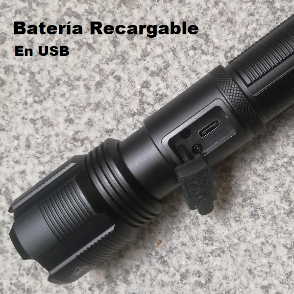 Marca / Nombre: Power Style Modelo:Z01 Material:Aluminio aeronáutico Color:Negro Largo:16 a 17cm (sistema telescópico) Ancho: 3.5cm. Modos de iluminación: alta, media, baja, estroboscópico y SOS. Fuente de luz: LED de alta potencia. Modos de iluminación: Múltiples (alto, medio, bajo, estroboscópico, SOS). Zoom / foco ajustable: sí, permite cambiar entre haz amplio y rayo concentrado. Batería: Recargable 18650. Alcance: Hasta 500 m o más. Indicador de batería: Leds laterales de estado de carga. Carga:USB 5v 1A.