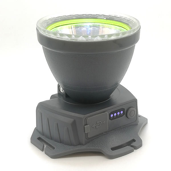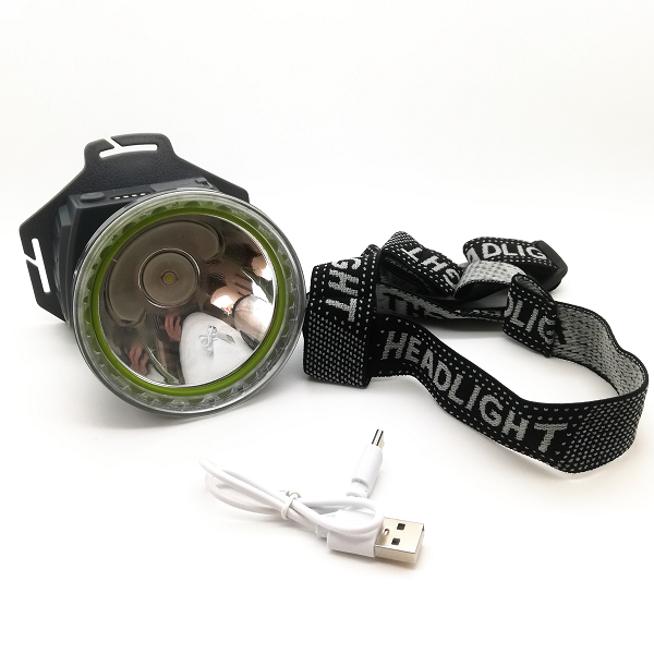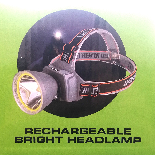 Marca / Nombre:Rechargeable Bright Headlamp Modelo:ZJ-8001 Material: ABS Color:Gris Alto:10.5cm. Alto: 8cm. Fondo: 10cm. Diámetro de lámpara: 8cm. Batería:Recargable interna Tiempo de carga: En USB de 4 a 6 horas. Resistente: a la lluvia. Modos de iluminación: Alta, media, intermitente. Indicador de carga: sí Cinta ajustable de cabeza: sí