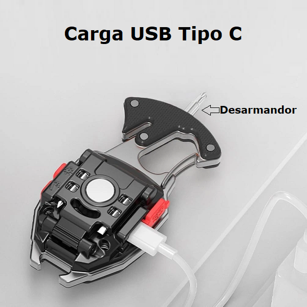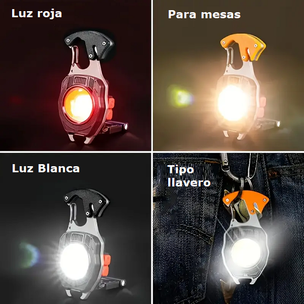 La W5147 es una linterna LED portátil con diseño de llavero que integra potencia de 500 lúmenes, durabilidad y funciones extras. Cuenta con 6 modos de luz COB (blanca alta y baja, cálida alta y baja, intermitente roja y estroboscópica), indicador de batería y resistencia al agua IPX6. Gracias a su estructura multifuncional, incluye herramientas prácticas como abrebotellas, destornilladores y cortador de emergencia, encendedor de fuego o cigarrillos, pito, convirtiéndola en un accesorio indispensable tanto en el hogar como en actividades al aire libre. Aplicaciones y Usos Iluminación portátil para camping, senderismo y viajes. Soporte en reparaciones domésticas o de automóvil con sus mini desarmadores. Herramienta de emergencia para cortes de energía. Encendedor de cigarrillos o fuego. Pito para emergencias. Se sujeta como llavero con un clip o los pegas a metales con su fuerte imán. Accesorio útil en mochilas, llaveros y kits de supervivencia. Ideal para trabajos nocturnos o en condiciones de baja visibilidad.