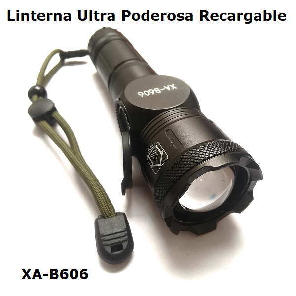La Linterna Recargable XA-B606 es una herramienta de iluminación de alto rendimiento diseñada para ofrecer potencia, durabilidad y versatilidad. Su sistema LED de alta intensidad proporciona un haz de luz potente capaz de iluminar grandes distancias, mientras que su función de zoom ajustable permite cambiar fácilmente entre iluminación focalizada o amplia. Incorpora una pantalla digital que muestra el porcentaje de batería, permitiendo saber exactamente cuándo recargarla. Además, cuenta con una luz lateral COB, ideal para iluminar áreas amplias como una lámpara de trabajo. Su estructura en aluminio aeronáutico garantiza resistencia a golpes, desgaste y condiciones exigentes. Gracias a su batería recargable mediante USB tipo C, es práctica, ecológica y perfecta para uso diario. Aplicaciones y Usos Esta linterna es ideal para múltiples actividades: Camping y senderismo. Seguridad y vigilancia. Emergencias y cortes eléctricos. Uso doméstico y automotriz. Trabajo técnico o mecánico. Actividades al aire libre. Caza y pesca. Rescate y supervivencia.