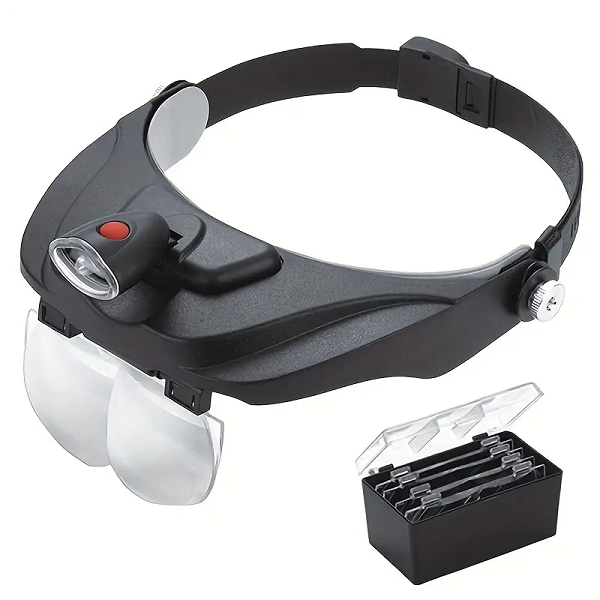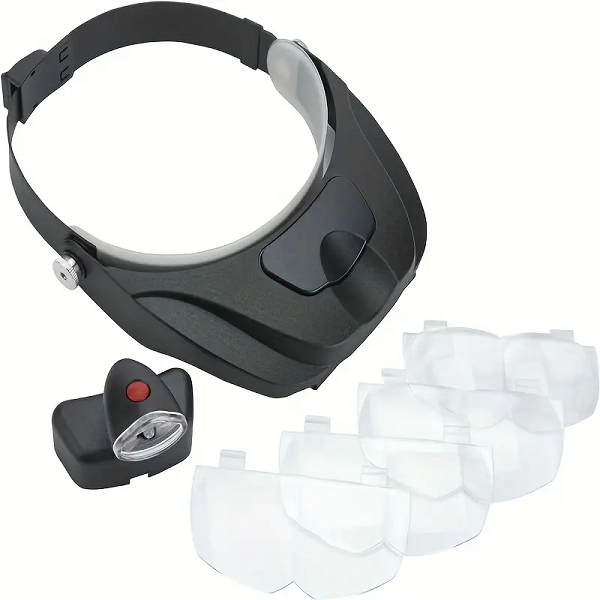 9 combinaciones de lupas y aumentos. Con lámpara led y cinta ajustable de cabeza. Para dentistas, veterinarios, mecánicos o para coser, bordar, recolectar muestras, lectura y más.