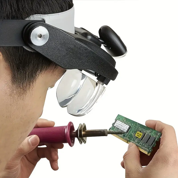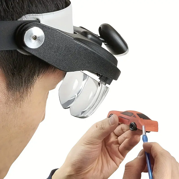 1. Lupa con cabezal de luz de amplio alcance con lente 3D y luz. 2. Diadema ajustable para adaptarse a la mayoría de los tamaños de cabeza. 3. Lupa: 1.2X-520 ~ 620 mm; 1.8X-230 ~ 320 mm; 2.5X-150 ~ 250 mm; 3.5X-80 ~ 120mm. 4. Luz led brillante para iluminar el campo de visión. 5. Potencia: 2 * 1.5V pilas AAA (no incluidas) Aplicaciones: Actividades al aire libre, de uso doméstico, y la fabricación, instalación y reparación en la industria electrónica. Observación de poros, manicura, escultura y arte, reparación de accesorios para cámara, relojes, lectura con poca luz, dentistas, sastres, trabajadores de bordado. Recolección de sellos, joyería, impresión, dibujo, lectura, costura, etc.