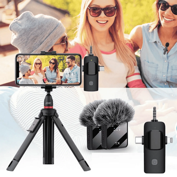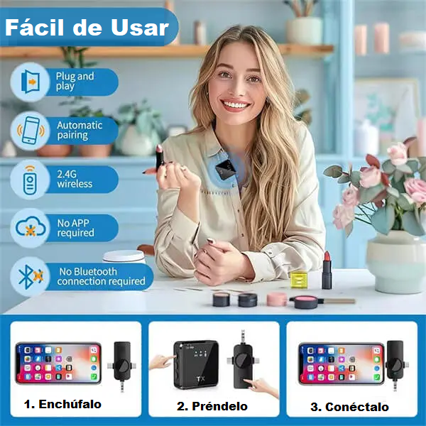 Crea contenido con audio profesional sin cables ni complicaciones. Su sistema dual incluye dos transmisores de solapa y un receptor 3-en-1 compatible con teléfonos Android, iPhone y cámaras DSLR. La transmisión inalámbrica de 2.4 GHz, conexión estable hasta unos 20 metros, ideal para grabar en interiores y exteriores. Incorpora un chip inteligente de reducción de ruido que limpia el sonido de viento y ambiente, dejando tu voz clara y presente. Con su batería recargable de larga duración y diseño ligero, podrás grabar entrevistas, clases, vlogs y transmisiones en vivo durante horas.