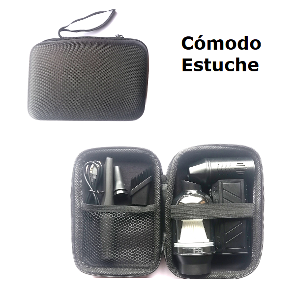 1 Mini Turbo Ventilador y Aspiradora 2 en 1. 1 Boquilla aspiradora con filtro. 3 Boquillas intercambiables. 1Cable de carga USB. 1 Estuche con cierre. 1 Manual de usuario.