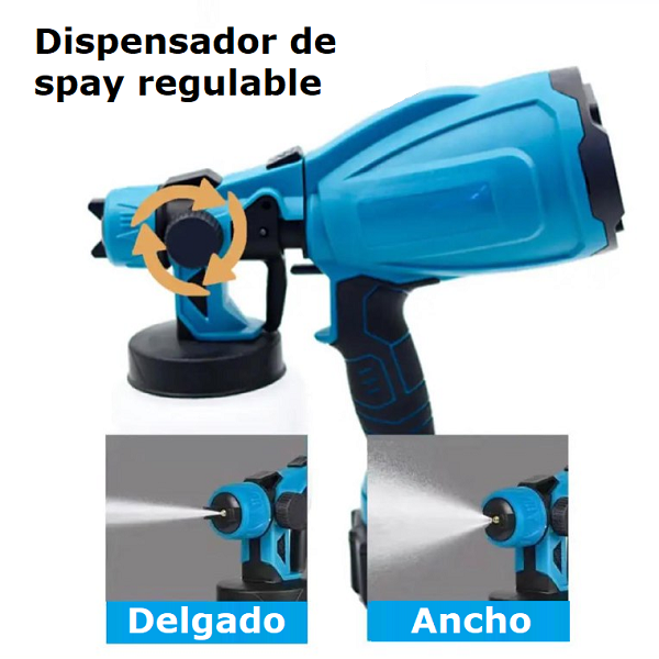 Es una pistola de pintar de alta eficiencia que atomiza la pintura en partículas finas para lograr superficies lisas y homogéneas. Gracias a su diseño inalámbrico con batería Li-Ion, permite trabajar con total libertad de movimiento, sin depender de tomacorrientes ni compresores externos. Incorpora un motor brushless de alto desempeño, gatillo ergonómico y regulador de caudal para ajustar la salida según el tipo de proyecto y material. Su taza inferior de plástico resistente está pensada para pinturas a base de agua, esmaltes, barnices y selladores ligeros, haciéndola una herramienta versátil para el hogar y el trabajo. Aplicaciones y Usos Pintado de paredes, puertas y marcos en interiores y exteriores. Renovación de muebles de madera, melamina y metal. Proyectos automotrices ligeros: parachoques, defensas, piezas pequeñas. Aplicación de barnices, selladores y protectores en carpintería. Trabajos de bricolaje, mantenimiento del hogar y pequeños talleres.
