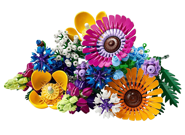 939 Piezas para armar el ramo completo con tallos y flores en diferentes diseños y colores. 1 Base o estructura de soporte. 1 Manual de instrucciones ilustrado.