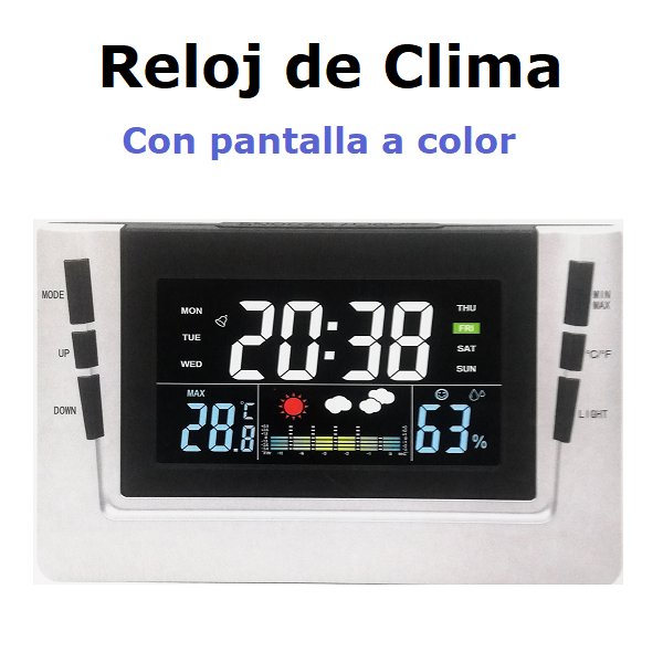 1 Reloj de Clima con Pantalla a Color. 1 Cable USB. 1 Manual de usuario.